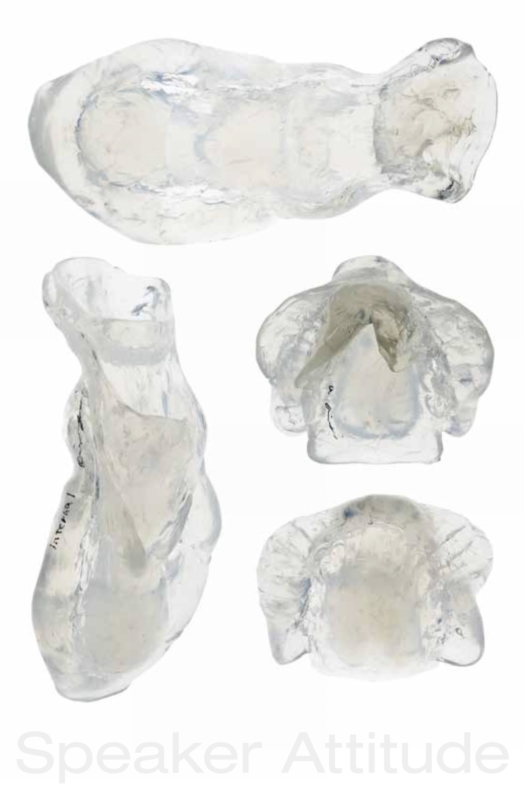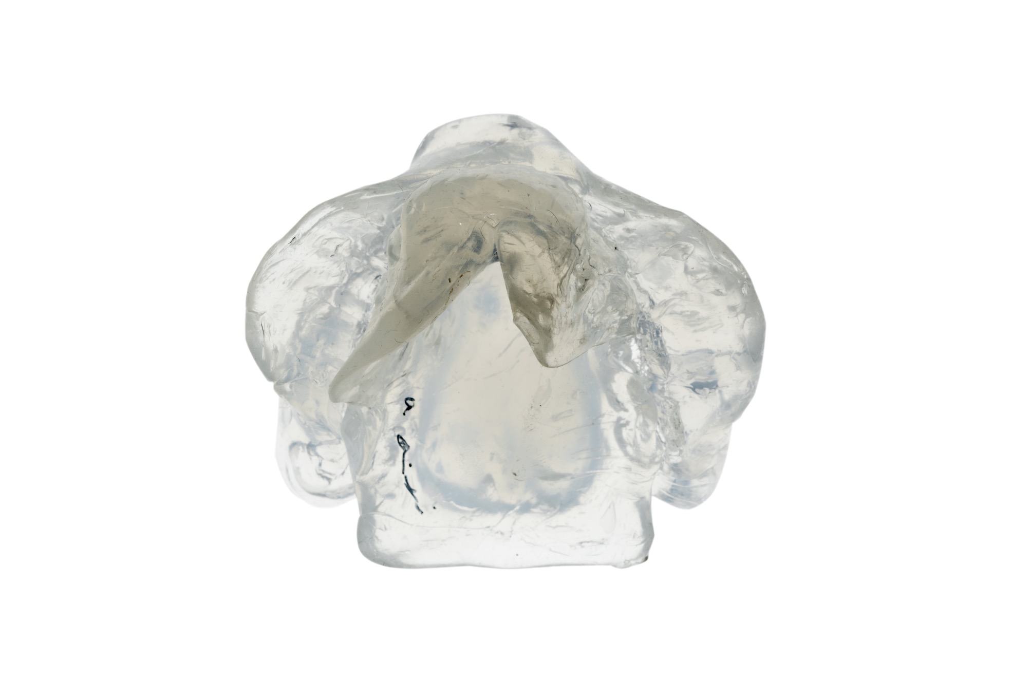 言葉が生まれる際の形に触ってみたくて、ポリエチレン樹脂を口内に入れ発話し型取りを行った。