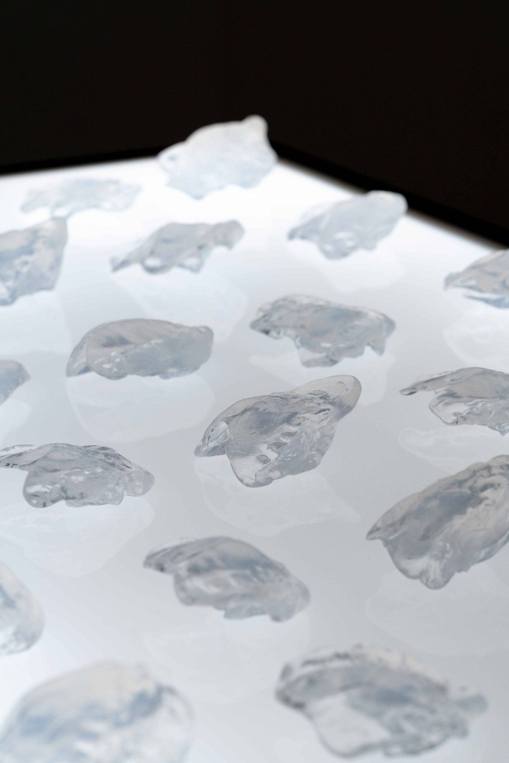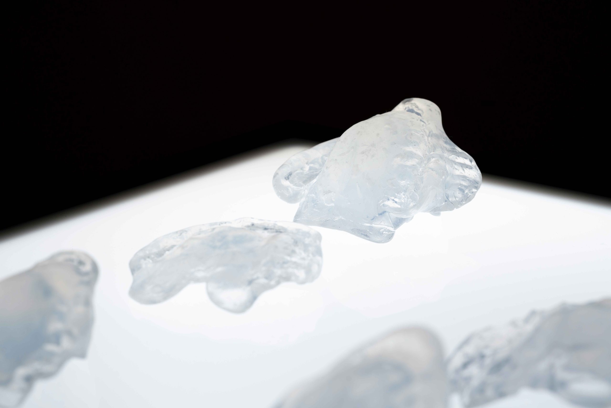 本展は、唇の動きとともに音声生成の要素である口内の形状に着目し、口内で硬化させたポリエチレン樹脂彫刻作品で構成します。